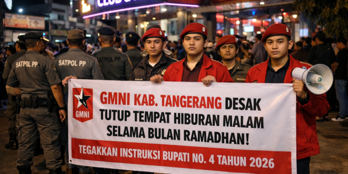 TANGERANG, (JT) — Dewan Pimpinan Cabang Gerakan Mahasiswa Nasional Indonesia (DPC GMNI) Kabupaten Tangerang secara tegas mendesak Satuan Polisi Pamong Praja Kabupaten