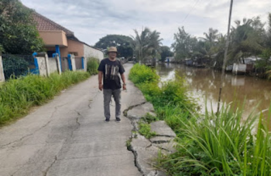 TANGERANG (JT) – Kondisi Jalan Poros Pasilian menuju Tempat Pelelangan Ikan (TPI) Kronjo di Desa/Kecamatan Kronjo, Kabupaten Tangerang, dilaporkan rusak berat dan membahayakan keselamatan pengguna jalan. Di sejumlah titik, badan jalan bahkan amblas hingga mendekati alur Sungai Cipasilian yang bermuara di Pulo Cangkir.