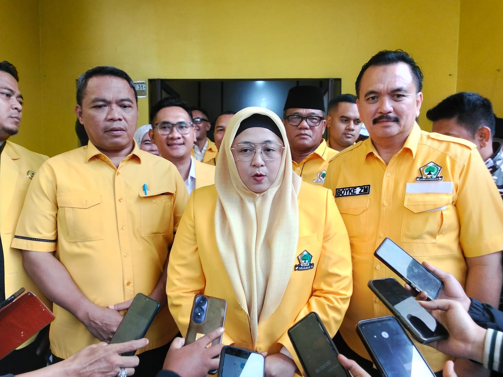 “Alhamdulilah di kesempatan ini kami diberikan dukungan penuh. 100 persen oleh seluruh elemen pemilik suara yang ada di Partai Golkar Kabupaten Tangerang,” ungkap Intan usai menyerahkan berkas pendaftaran.