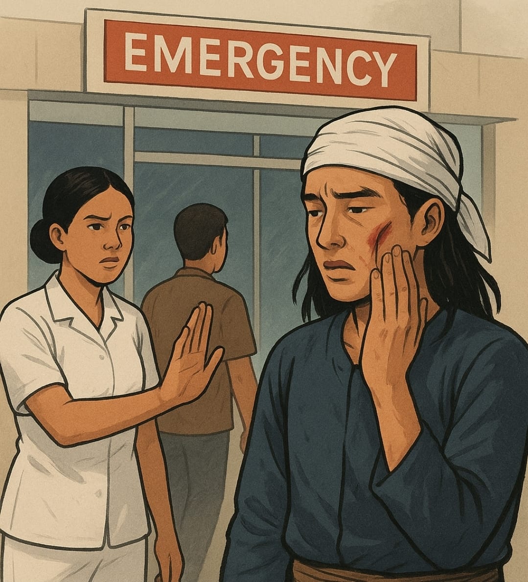 Repan adalah korban yang mengalami dua kerugian sekaligus: pertama saat diserang pelaku kejahatan, lalu kedua kalinya ia ditolak oleh rumah sakit yang seharusnya menjadi tempat perlindungan pertama bagi warga yang terluka dan membutuhkan pertolongan cepat.