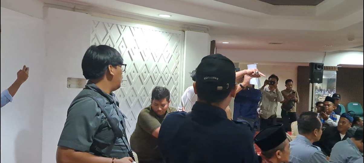 TANGERANG, (JT) – Rapat paripurna istimewa DPRD Kabupaten Tangerang dalam rangka peringatan Hari Ulang Tahun (HUT) ke-393 mendadak ricuh, Senin (13/10/2025). Dua anggota Gerakan Mahasiswa Nasional Indonesia (GMNI) Kabupaten Tangerang melakukan aksi protes di tengah jalannya sidang paripurna yang dihadiri sejumlah pejabat daerah dan mantan Wakil Presiden RI ke-13, KH. Ma’ruf Amin.