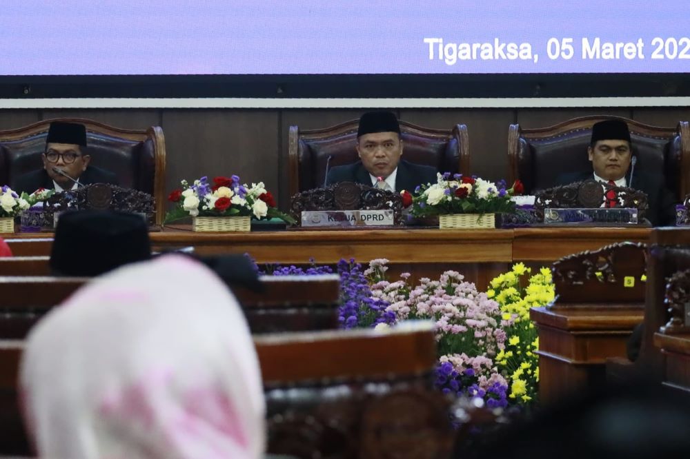 TANGERANG, (JT) – Dewan Perwakilan Rakyat Daerah (DPRD) Kabupaten Tangerang menggelar rapat paripurna istimewa, Rabu (5/3/2025). Rapat paripurna dengan agenda serah terima jabatan (sertijab) Bupati dan Wakil bupati Tangerang ini, dipimpin langsung oleh ketua DPRD Kabupaten Tangerang Muhamad Amud.