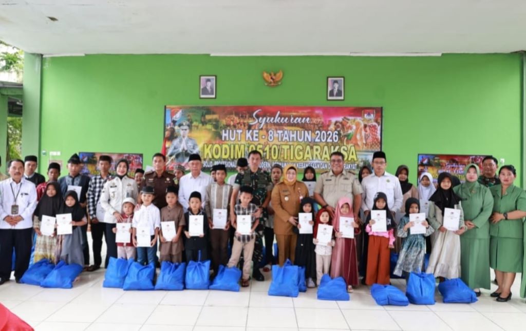 Perayaan HUT ke-8 Kodim 0510/Tigaraksa dihadiri Wakil Bupati Tangerang, Kepala Kejaksaan Negeri, Kepala Lapas, Kepala BPN, serta Ketua MUI Kabupaten Tangerang, berlangsung di Makodim 0510/Tigaraksa, pada Senin, 9 Februari 2026.